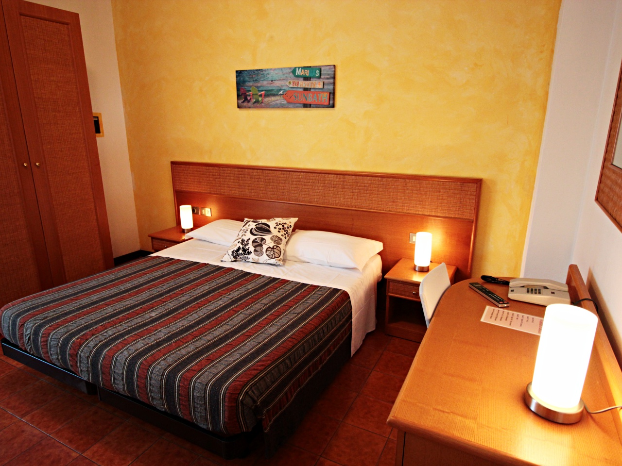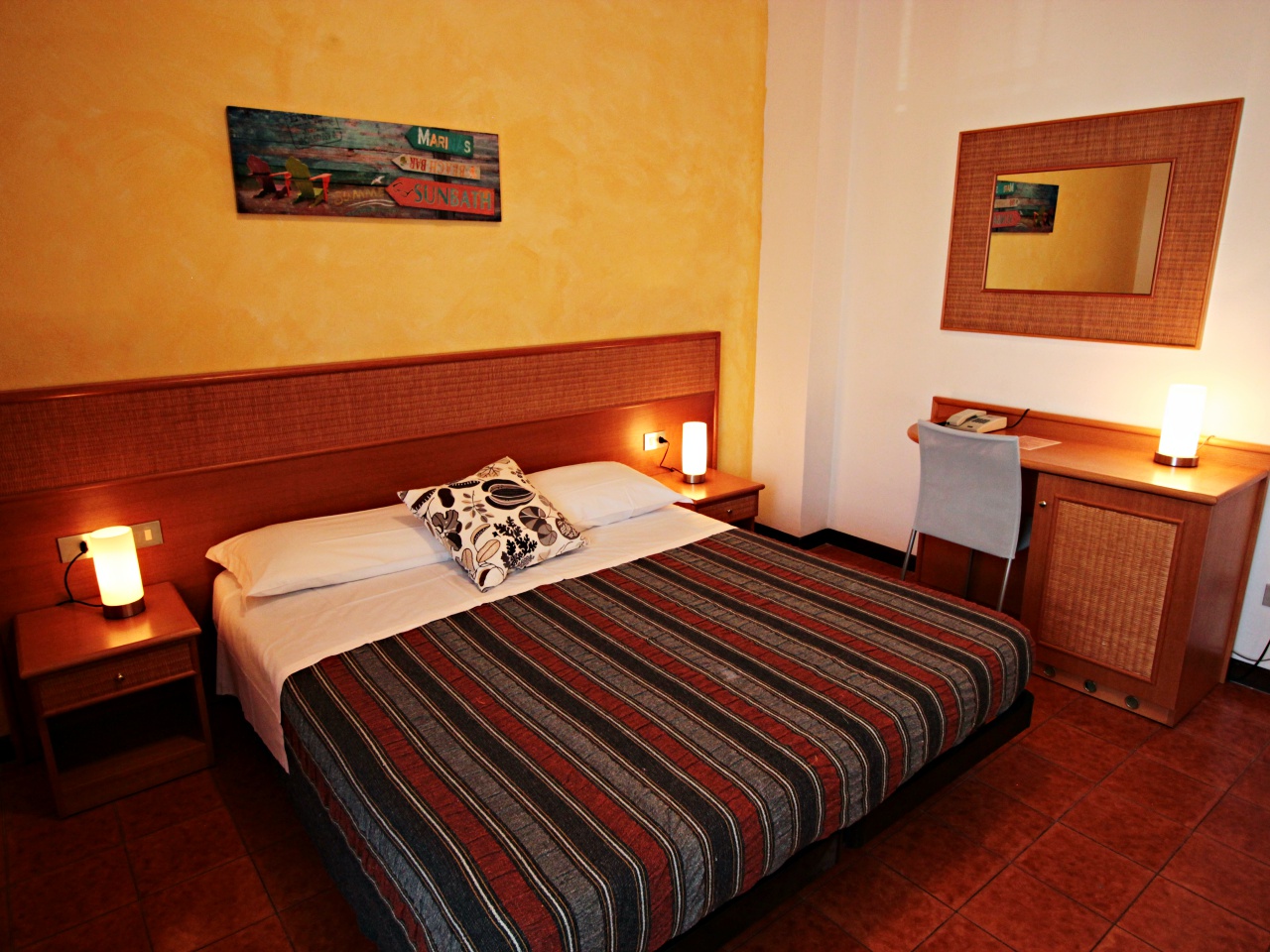 Unser Hotel befindet sich in strategisch günstiger Lage, nur wenige Schritte vom Lignano Sabbiadoro Zentrum und wenige Minuten vom Strand entfernt und bietet seinen Kunden viele Dienstleistungen, wie einen Schwimmbad, einen privaten Parkplatz, einen kostenlosen Fahrradverleih, kostenlose Wi-Fi usw. Unsere Mitarbeiter werden Sie mit Herzlichkeit und Professionalität behandeln und jede Zeit Beratung anbieten: ueber Ausflüge (Venedig, Triest, Grado, Aquileia ...) oder wo man am besten einkauft.