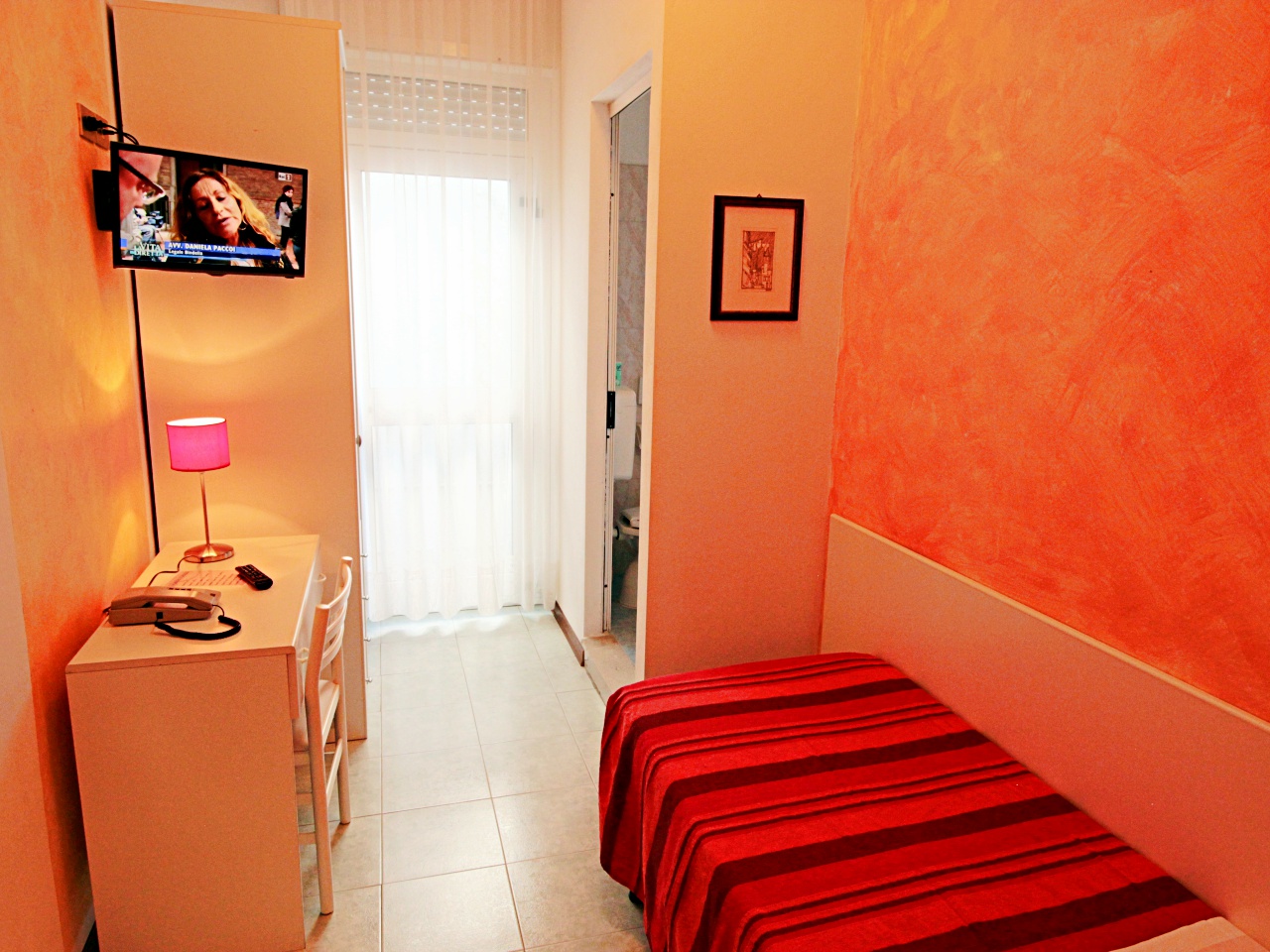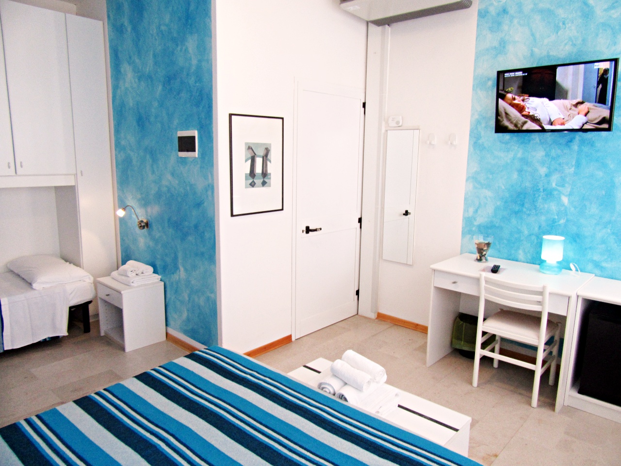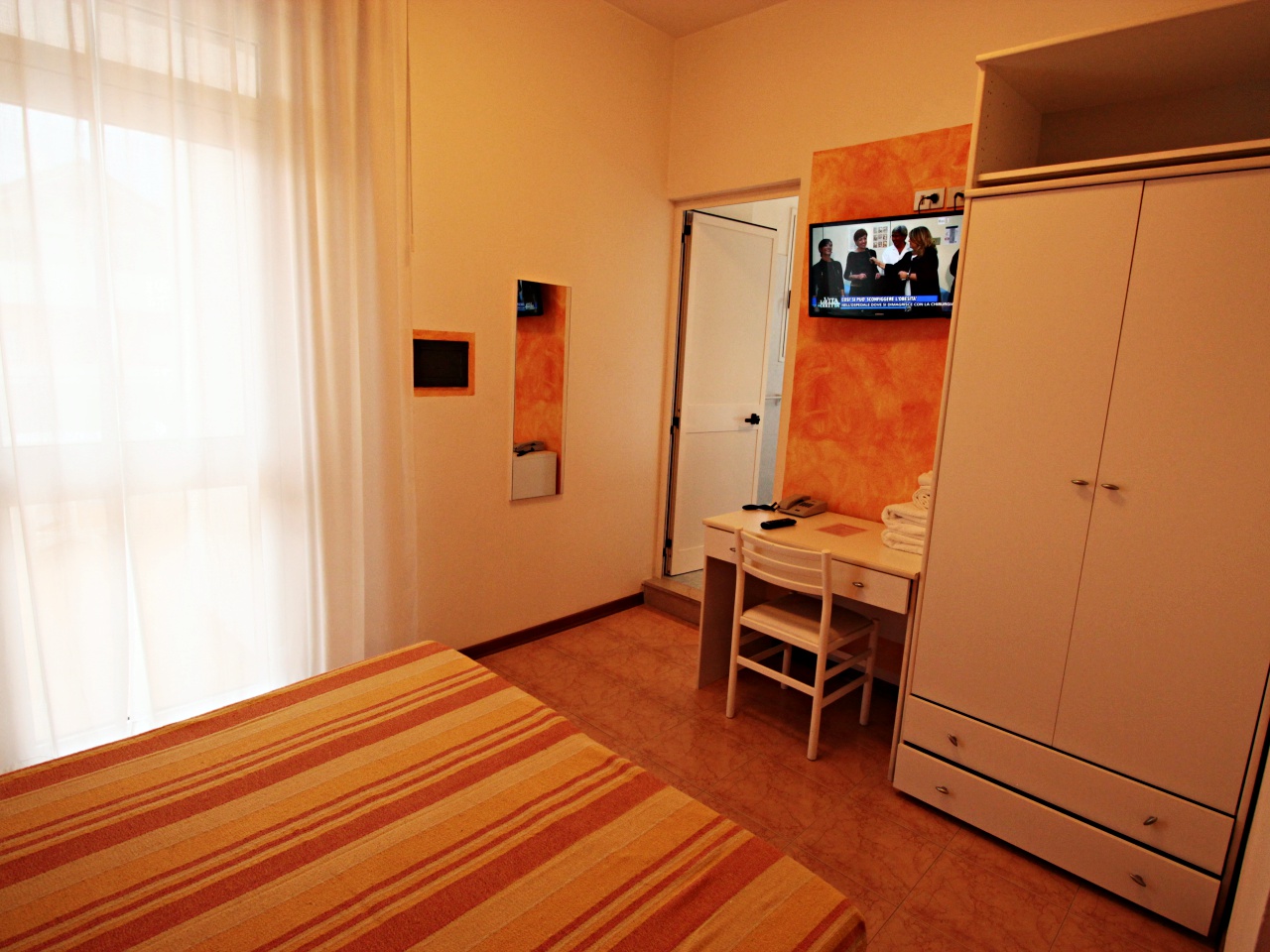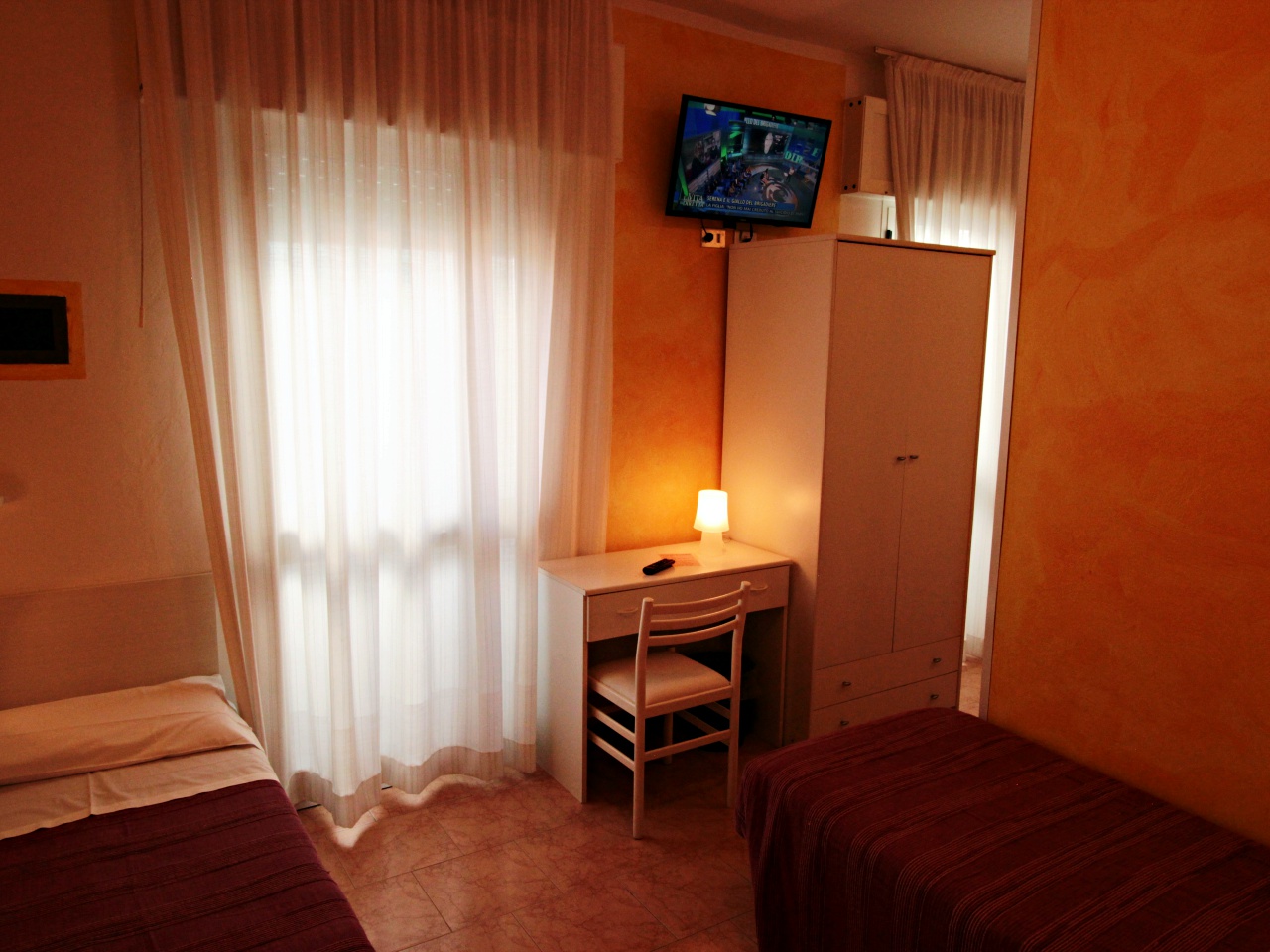 Die Zimmer sind einfach und geschmackvoll eingerichtet, ausgestattet mit Dusche, WC, Haarfön, Sprechanlage, Kühlschrank, Sat-TV, Klimaanlage, Heizung, Safe und Balkon.